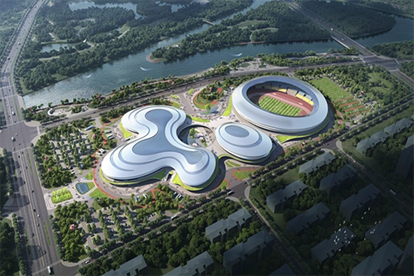 項目概況:本項目總建筑面積約8.8萬㎡,建設內容包含體育場、體育館、游泳館、羽乒館、劇院及道路、綠化、室外運動場所等配套建設設施,可承接省級以上運動賽事的體育場館。